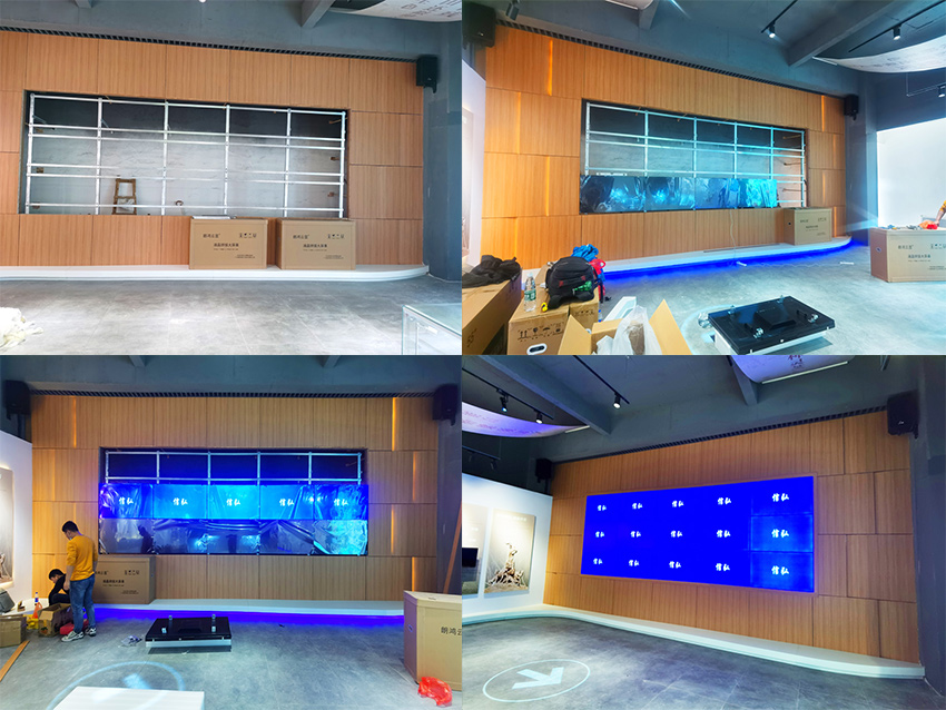 此次,采用的是信弘3.5mm拼縫,總計15塊55寸的超清顯示液晶拼接屏,安裝方式為落地支架安裝。