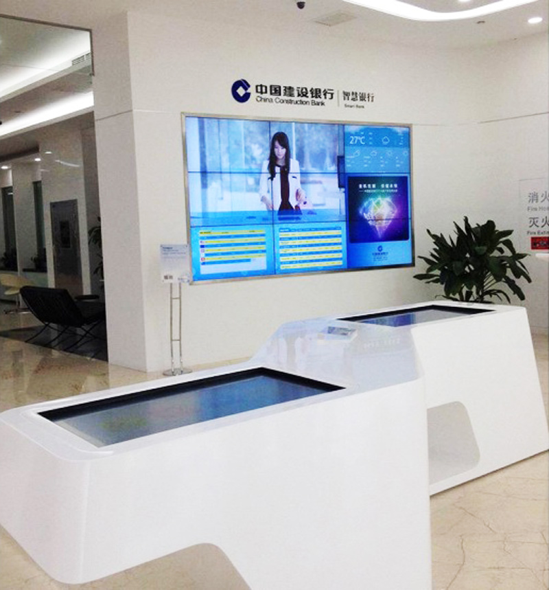 液晶拼接屏入駐銀行內部,不僅加強了銀行信息傳播能力,提升了客戶的信任度,也給銀行的安全帶去了強有力的保障!